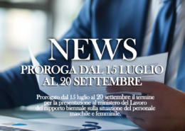 Prorogato dal 15 luglio al 20 settembre il termine per la presentazione al ministero del Lavoro del rapporto biennale sulla situazione del personale maschile e femminile.