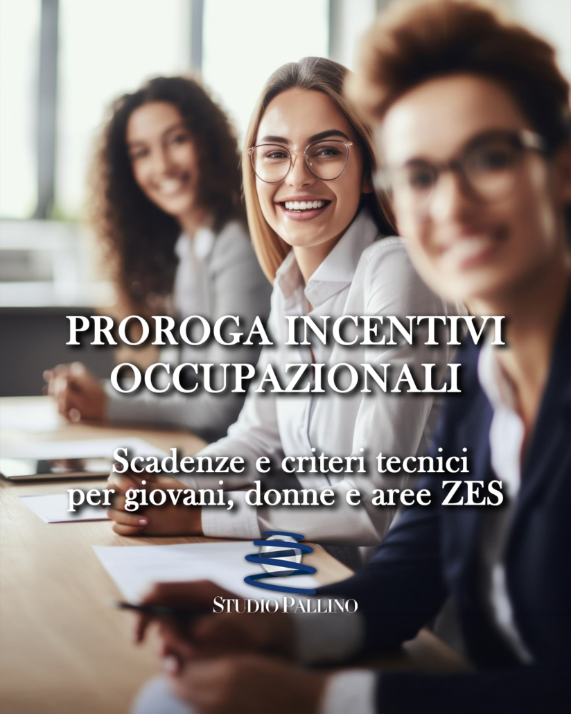 Incentivo Giovani (Decreto Coesione) Soggetti under 35 mai occupati con contratto a tempo indeterminato. Esonero contributivo 100% (max 500€/mese) per 24 mesi. 30 aprile 2026. Aliquota base fissata al 70%; sale al 100% se l’assunzione genera un incremento occupazionale netto.